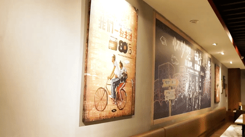 墙上的装饰画上写着:青春不散场